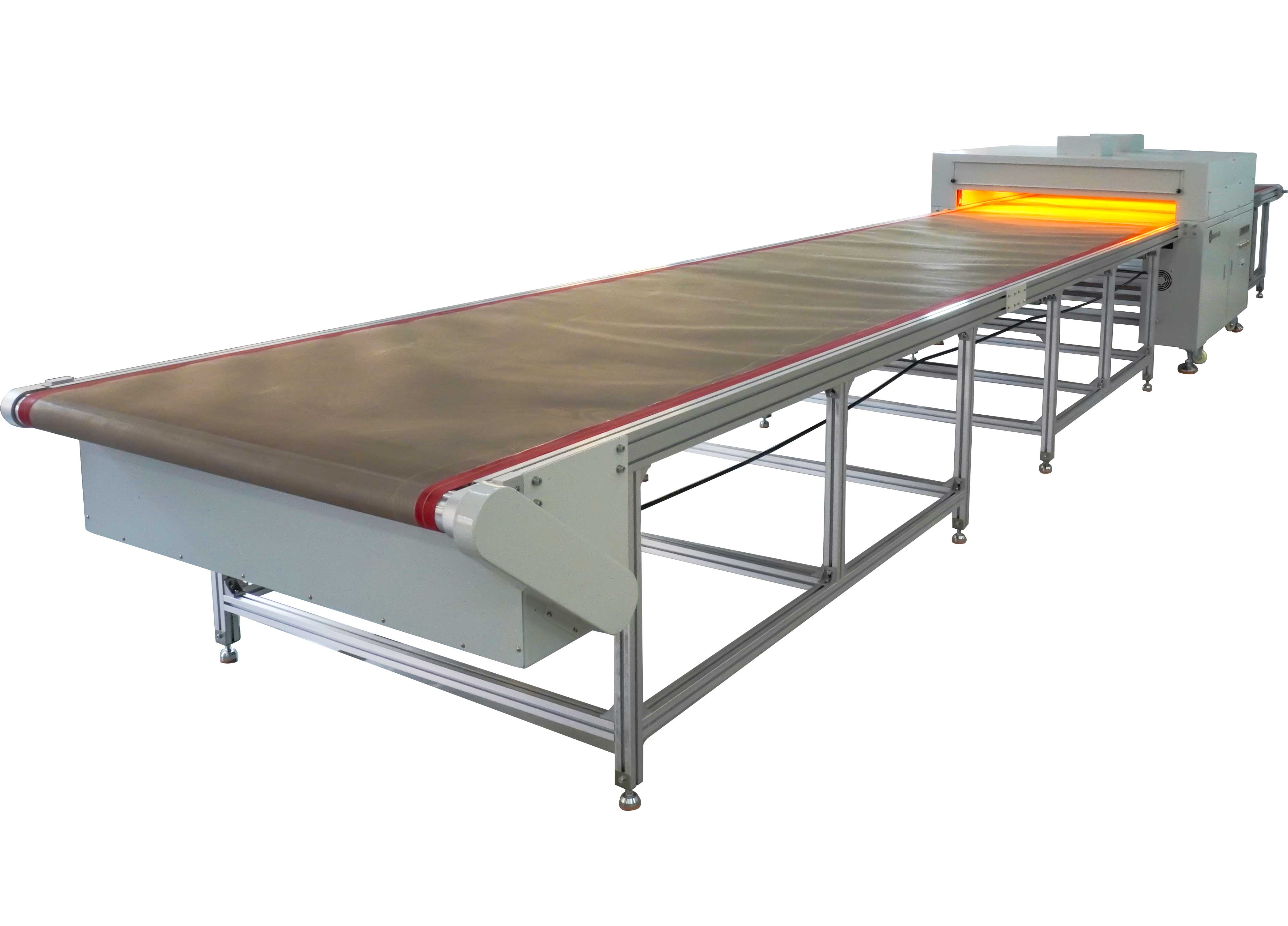 2、輸送帶采用耐高溫特氟龍網(wǎng)帶,具有自動糾偏功能。