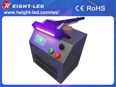 The UV-LED curing system adopts the LED lighting method, include controller(inner water chiller) and portable uv led head,with 395nm wavelength, curing area is 20x150mm, fast curing for the uv paint and uv ink on furniture or floor,the bottom is equipped with wheels for easy movement